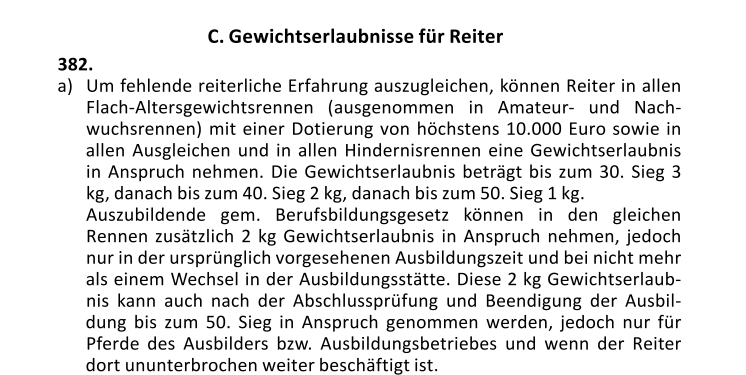 Nachfolgend der relevante Ausschnitt aus der Rennordnung von Deutscher Galopp.