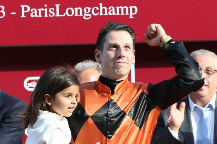 Das ist Cristian Demuro. Der 33jährige Italiener, der in seiner Heimat 2011 und 2012 das Championat gewann, und nun schon viele Jahre in Frankreich reitet, führt das Championat, für das in Frankreich ähnlich wie in England nur der Zeitraum vom 1. März bis zum 31. Oktober gewertet wird, mit 158 Siegen (Stand Donnerstagmorgen vor dem Renntag in Chantilly) an. Mit 151 Siegen liegt Maxime Guyon, der Titelträger der letzten drei Jahre, sieben Punkte hinter ihm. Mickael Barzalona, der Champion von 2021, dürfte mit aktuell 141 Siegen keine Chance mehr auf den Titel haben.