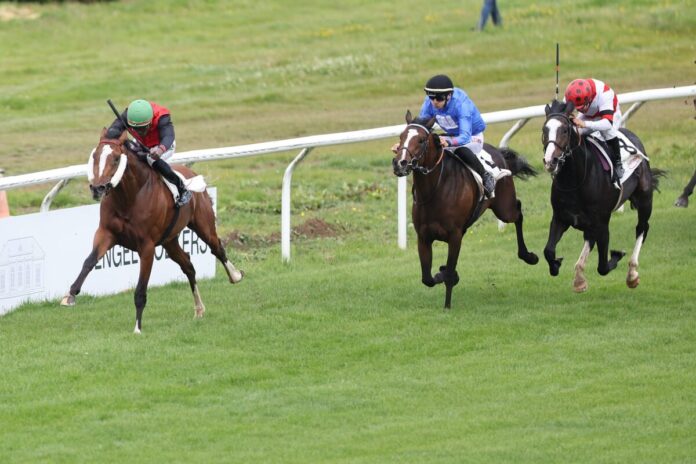 „Ich bin super zufrieden mit dem Laufen, da er in der Zielgeraden sogar noch ein Stück weit unglücklich war, weil er kurz festgesessen hatte. Er hat aber gezeigt, dass er stehen kann, und wir fahren zuversichtlich nach Hamburg. Sollte es dort regnen, käme uns das natürlich entgegen“, sagte Andreas Suborics über Name Lord.