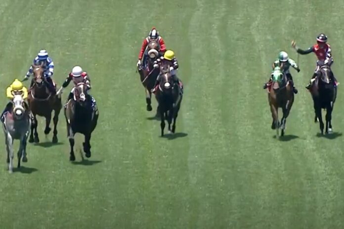 Spannende Finishes, in denen sich Pferde und Jockeys nichts schenken, machen neben anderen Dingen die Faszination des Rennsports aus. Was sich am Sonntag im zweiten Rennen der Veranstaltung im südafrikanischen Turffontein abspielte, ging dann doch ein wenig zu weit.