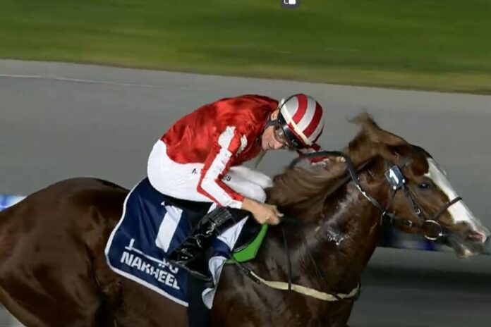 Den mit dem von Fawzi Nass für Victorius trainierten Military Artist war de Vries in einem mit 171.500 VAE-Dirham, knapp 43.000 Euro, dotierten Altersgewichtsrennen für dreijährige Pferde nicht zu bezwingen.