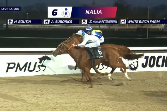 Zweites Rennen auf der PSF-Bahn von Lyon la Soie und der zweite deutsche Sieg. Die von Andreas Suborics trainierte Nalia setzte sich in einem Sieglosenrennen für zweijährige Stuten unter Hugo Boutin als Favoritin durch.