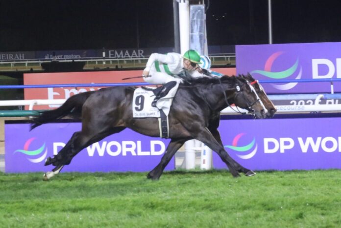 Einige Minuten dauerte es nach dem mit fünf Millionen US-Dollar dotierten „Dubai Turf“ bis der Sieger in der Gruppe I-Prüfung feststand. Umso mehr freute sich Siegreiter Cristian Demuro nach dem Sieg mit dem Japaner Soul Rush.