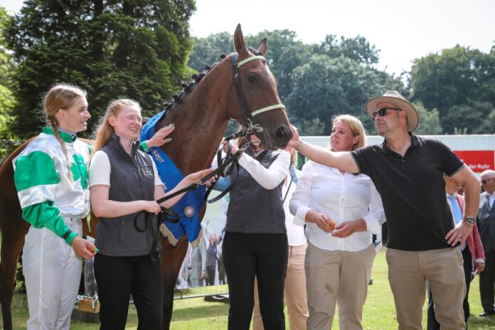 37 Jahre musste die Mülheimer Trainingszentrale auf einen Derbysieger warten. 1988 war Uwe Ostmanns Luigi der letzte Derbysieger vom Raffelberg gewesen. Doch am 6. Juli war es endlich wieder so weit. Im IDEE 156. Deutschen Derby gewann der von Yasmin Almenräder für den Stall Cloverleaf trainierter Hochkönig. Im Sattel war Nina Baltromei die erste Frau, der ein Sieg im Blauen Band gelang.