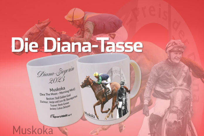 Der Sieg von Muskoka ist das neue Motiv der Tassen aus der Sport-Welt-Edition. Die Diana-Tasse erinnert an den Treffer im Henkel Preis der Diana.