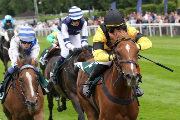 Drittes Rennen am Sonntag in Hoppegarten war ein Ausgleich III über 2200 Meter. Und in dem Handicap gab es den ersten Heimsieg des Tages. Für diesen sorgte die von Roland Dzubasz vorbereitete Aleja. Die Masar-Tochter gewann mit Lillie-Marie Engels im Sattel als 11,9:1-Außenseiterin gegen die favorisierte Schlenderhanerin Northern Eclipse (Peter Schiergen/Leon Wolff), hinter der Stefan Richters Emotion (Martin Seidl) Platz drei belegte.