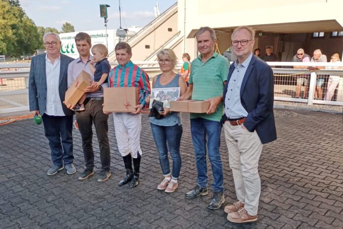 Michael Cadeddu ritt dahinter Dr. Andreas Boltes Waldulm auf den zweiten Platz. Zum vierten dritten Platz des Tages kam Reiter Martin Seidl. Er belegte im letzten Rennen der Vollblüter den letzten Platz in der Dreierwette mit der von Sarah Weis vorbereiteten My Valentine.