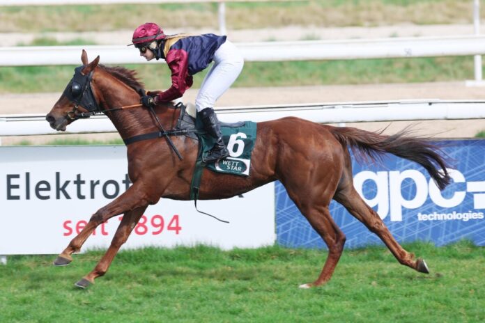 Darunter befand sich auch der von Roland Dzubasz für den Rennstall Labinsky trainierte Tamimno. Der Jimmy Two Times-Sohn kam unter Amateur-Championesse Nina Baltromei erstmals auf einer solch weiten Distanz an den Start, doch nach einem Rennen aus der Reserve war der Wallach am Ende leichter Sieger und sorgte für den ersten Treffer seines Betreuers in der Saison 2025.