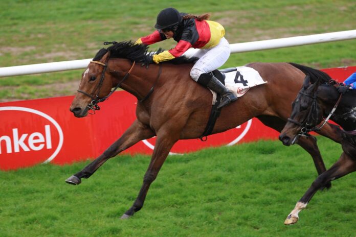 Das sechste Rennen in Düsseldorf wurde als Ausgleich III (1700 Meter) und als wertungslauf zur Fegentri World Championship for Lady Riders gelaufen.