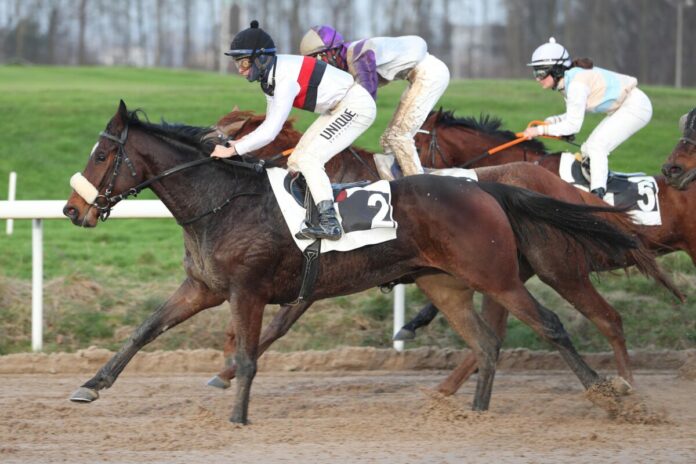 Zu einem schnellen Doppel in Wambel kam Gestüt Sommerbergs Dortmunder. Der Wallach mit dem passenden Namen zur Stadt gewann nach seinem zuletzt auf der Grasbahn erzielten Treffer nun auch auf Sand.