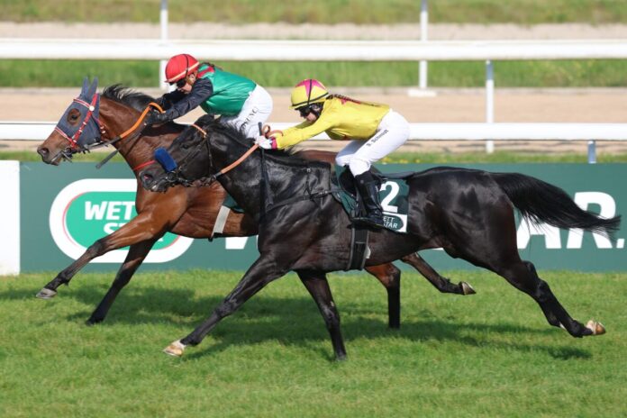 Das war im Ausgleich III über 1300 Meter, der gleichzeitig das Rennen mit der Viererwette war, die von Christian Wolters trainierte Vierjährige Dream Seeker, die unter Steffi Koyuncu als längste Außenseiterin zur Quote von 37,6:1 den lange wie der Sieger aussehenden Wikinger (Henk Grewe/Sina Schmidt) noch abfing. Platz drei und vier gingen an War Bride (Yasmin Almenräder/Vivian Fahrnow) und Savoya (Andreas Wöhler/Nina Baltromei). Die Viererwette zahlte dabei 20.000:1, sie wurde also nur einmal getroffen.