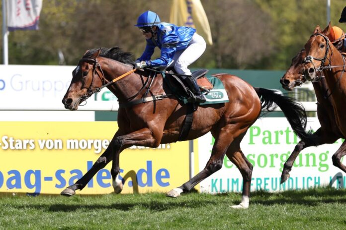 Das sechste Rennen am Sonntag in Mülheim, der Ausgleich IV über 2000 Meter, war der 1. Wertungslauf zur Sparkasse Mülheim an der Ruhr-Nachwuchstrophy. Neun Pferde mit neun Nachwuchsreiterinnen oder Amateuren kamen an den Start.