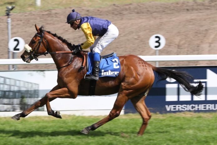 „Mein Pferd kam von 1000 Meter, er war deshalb gleich gut dabei. Danke an meine Frau und an Christian von der Recke, der das Pferd in England ausgesucht hat. Er hat das alles gut gemacht“, so Siegjockey Alexander Pietsch über den Expert Eye-Sohn, auf den es am Totalisator 6,1:1 gab.
