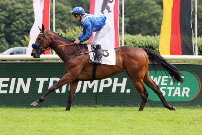Im dritten Rennen des Tages, einem Maidenrennen für die Dreijährigen über 2300 Meter, kommt der von Christian von der Recke trainierte Forsberg (Nr.4) nicht an den Start.