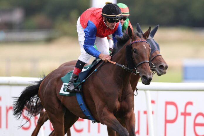 Die Schwester des Galopp-Weltstars Goliath, Go Flying, ist nach einigen Platzierungen jetzt auch selbst Siegerin.