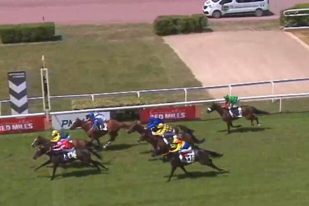 Aus dem Feld kamen in der Endphase aber zwei Gegner noch stark auf, und zuletzt spürte Motion sein Pensum, sodass er kurz vor der Linie noch abgefangen wurde. ein kurzer Kopf und eine dreiviertel Länge fehlten zum Sieg. Gewonnen wurde das Rennen von Fabrice Chappets Nepalais (Stephane Pasquier), der gegen Alicia Karkosas Masaiya gewann.