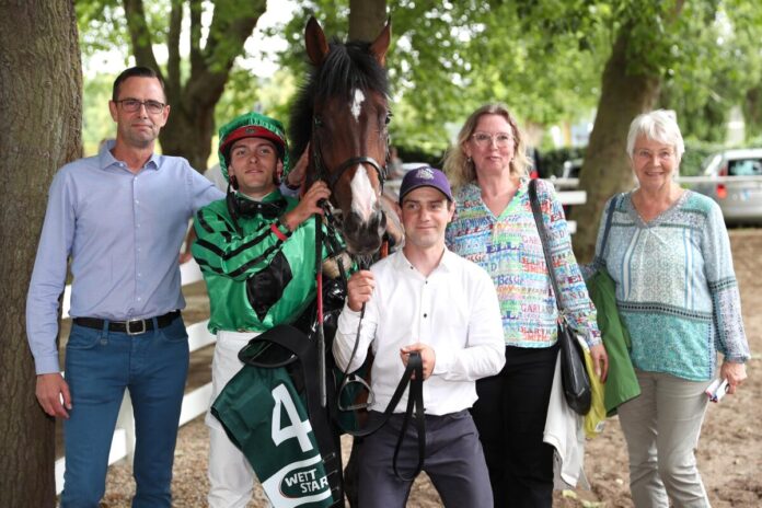 So richtig schön war der Renntag in Mülheim für den am Platz tätigen Marcel Weiß. Nachdem nämlich die von ihm vorbereitete Tausendschön die Karte eröffnet hatte, gewann zum Abschluss des Tages sein Schöngeist das erste Rennen der Karriere.