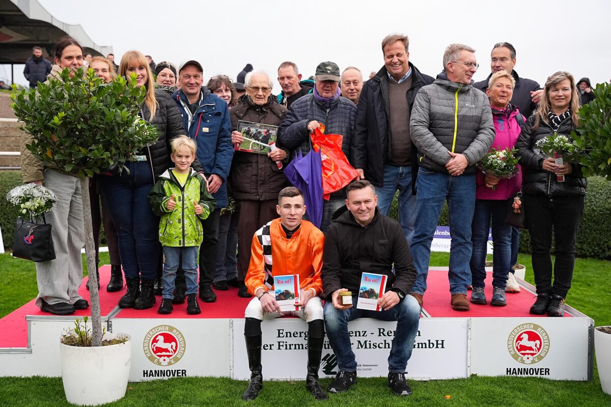 Der Siegtrainer: „Ich hatte schon Mumm auf Adio, der Jockey hat die Order richtig umgesetzt. Das hat mir sehr gut gefallen. Dass er als dreijähriges Pferd drei Rennen gewonnen hat, das ist schon eine gute Leistung.“