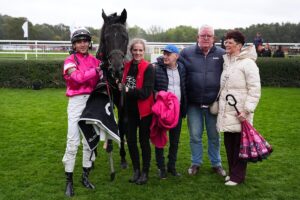 „Er hat gut gewonnen, er war noch sehr grün, ein spätes Pferd, ich denke da wird noch ein bisschen was von ihm kommen“, so der Siegjockey nach dem Rennen.