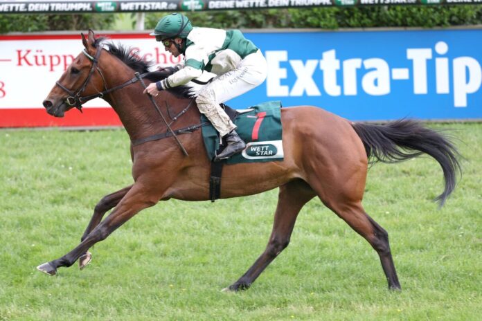Das Hauptrennen am Pfingstsonntag im Krefelder Stadtwald war das vierte Rennen, das Mylady-Rennen – Siegerin 2022 im Dr. Busch-Memorial. In dem Ausgleich II über 1700 Meter kamen sieben Pferde an den Start, nachdem Andreas Wöhlers Salve’s Secret abgemeldet wurde.