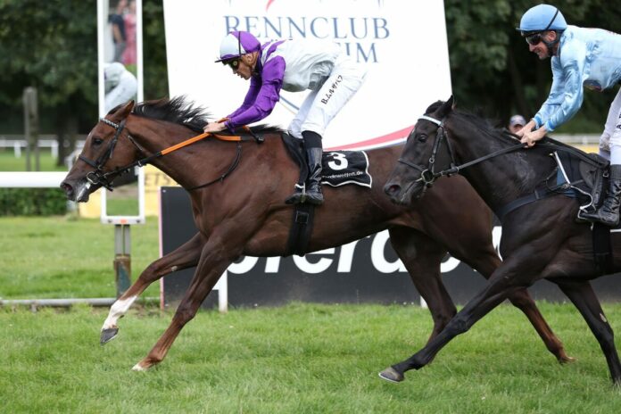 Im pferdewetten.de – Princess Badee Cup kam am Ende die 2,9:1-Chance Avola für Trainer Peter Schiergen und Bauyrzhan Murzabayev zum Zuge. Die Nutan-Tochter aus der Zucht von Ursula und Jürgen Imm vertritt deren Farben in Gestalt des Stalles Nizza, und spätestens nach dem Listenrennen in Mülheim musste der Mumm im Team um Avola steigen.