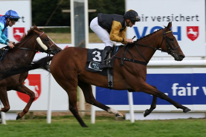 Dieser präsentierte sie nun in einem maßgeschneiderten Altersgewichtsrennen über 2200 Meter in Hannover und hier konnte Narmada an ihre alten Formen aus dem Jahr 2022 anknüpfen. Als Dreijährige war sie nämlich zwei Mal auf Black Type-Niveau platziert. Daran möchte man sich nun bestimmt annähern.