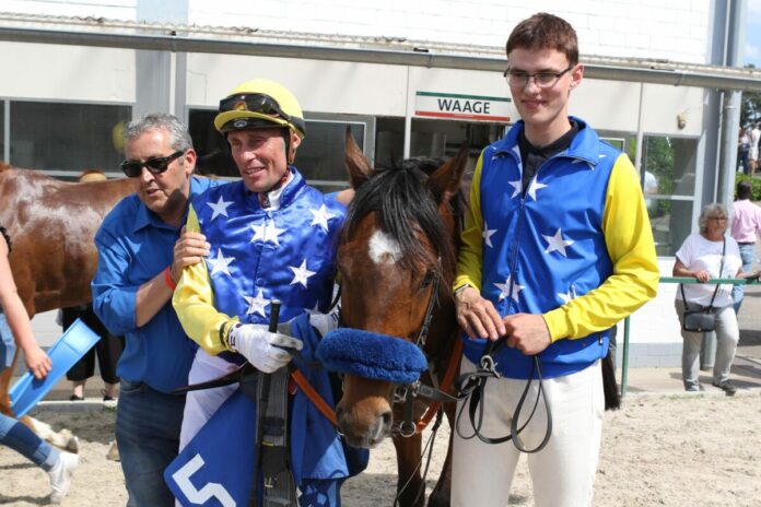 Jockey Alexander Pietsch konnte am 1.Juni seinen 51.Geburtstag feiern, da aber am Donnerstag keine Rennen stattfanden, musste er bis zum heutigen Samstag warten, um sich selbst beschenken zu können. Das hat er dann in Mannheim auch getan. Er siegte mit Repute für Trainer Frank Fuhrmann in den Farben des Stalles Royal Blue.