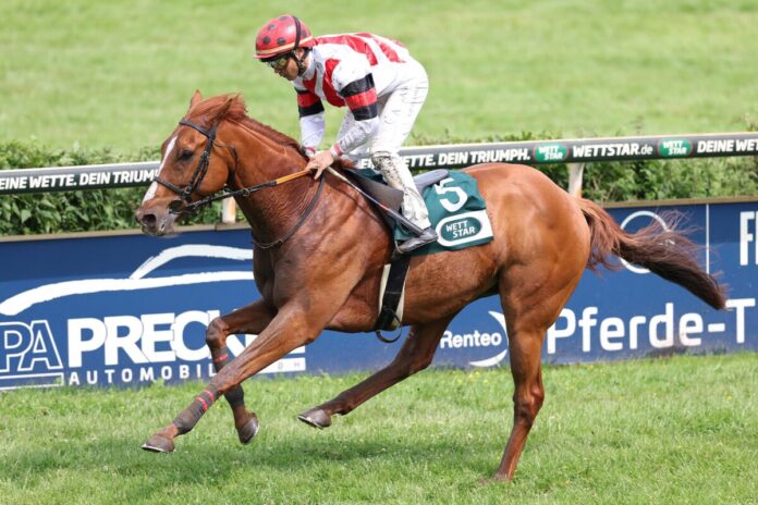 „Nach dem Ausgleich I in Köln, wo er Dritter wurde, hatte er sich einen Sehnenschaden zugezogen. Wir haben ihn dann auch gleich kastriert und ihm die nötige Zeit gegeben. Er kann schon was. Mal sehen, ob wir jetzt noch einmal so ein leichtes Rennen finden. Bei 100 Prozent war er heute ja noch nicht“, so Trainer Sascha Smrczek über den Sieger, der dem Stall Grafenberg von Albrecht Woeste gehört.