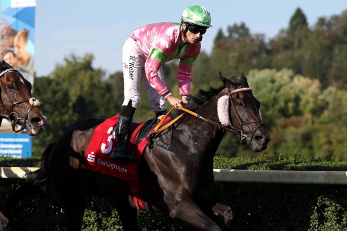 Trotz des kleinen Feldes entwickelte sich ein unterhaltsames Rennen. Mit einem frühen Vorstoß entschied Robin Weber das 1900 Meter-Altersgewichtsrennen für sich und seine Partnerin Raike. Die Stute aus dem Besitz von Emil Emilov und dem Training von Fabian Xaver Weißmeier gewann am Ende sicher.