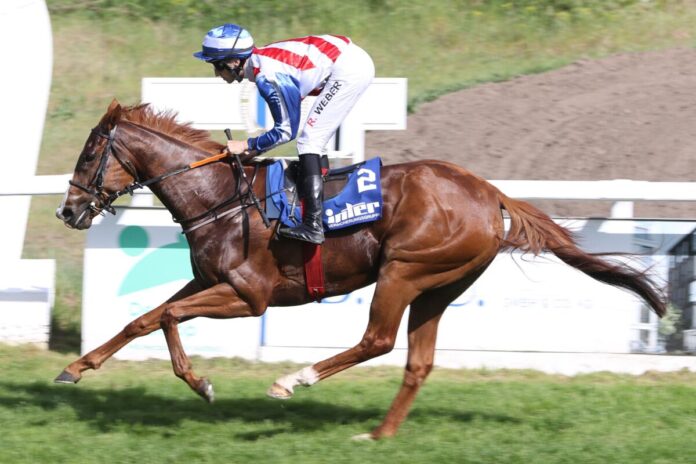 Für den im Rennen zuvor gestürzten Andrea Ricupa war Robin Weber im letzten Handicap des Mannheimer Renntages, einem Ausgleich IV über 1900 Meter, auf Bohumil Nedorosteks Zeraphina eingesprungen. Und den „Kistenritt“ konnte Weber auf der 4,2:1-Chance dann auch in einen Sieg ummünzen.