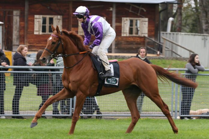 Sibylle Vogt über Ihre Wahl: „Das ist zum aktuellen Zeitpunkt nicht so einfach. Alle Pferde aus unserem Stall haben eine Startberechtigung im Derby. Bis auf Weracruz habe ich alle schon im Rennen geritten. Napolitano ist ein sehr gutes Pferd. Gestern war die Pace von mir zu schnell für ein Vorbereitungsrennen, das habe ich mir anders gewünscht. Aber er ist ein sehr guter Charakter und wird das wegstecken.“