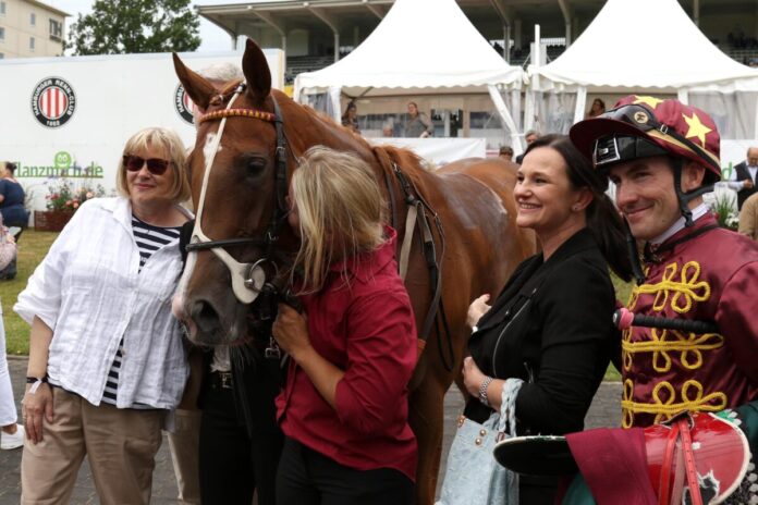 Drei Starts, drei Plätze, das war die bisherige Ausbeute der von Gerald Geisler für den Stall Desauville betreuten Dolcevida. Am Samstag folgte in Hamburg nun der erste Volltreffer. Und das gleich in sehr gutem Stil.