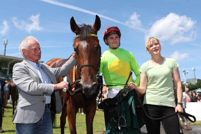 „Ich war vielleicht ein bisschen zu früh vorne, aber sie hat immer weiter angezogen und das Ding nach Hause geholt. Sie hat einen Super-Rhythmus. Auch bei mir läuft es aktuell sehr gut, ich hoffe das geht so weiter“, analysierte der Siegreiter das Rennen. Rang drei sicherte sich in dem als Ausgleich III über 1800 Meter gelaufenen Schoppe-Cup Ajdar Al Gunay.
