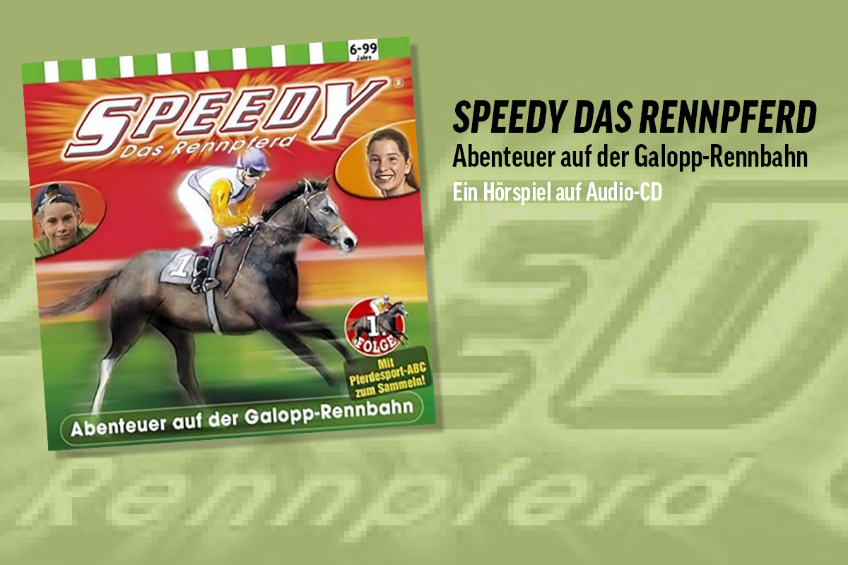Hören Sie ein spannendes Pferde-Hörspiel für Kinder ab 6 Jahren rund um das Rennpferd Speedy.