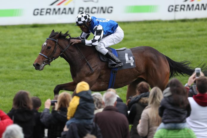 „Schoss im Einlauf aus dem Hintertreffen durch das Feld, siegte in riesigem Stil“. Das Pferd, das aus Sicht des Beobachters eine solch euphorische Kommentarzeile nach dem Erfolg eines Gruppe-III-Rennens kreiert bekommt, dürfte noch zu weit Höherem berufen sein. Die Rede ist von Delectation, die am Ostermontag in der Tat im Stile einer Classic Lady die wichtige Kölner Generalprobe für die großen Stutenklassiker gewann. Nach einem Rennen aus der Reserve hatte Eduardo Pedroza mit der von Andreas Wöhler trainierten Stute am Ende keine Mühe, ein kämpfendes Rudel, das auf der Linie von Alicante und dann mit Hargeisa und Peace in Motion im toten Rennen angeführt wurde, locker auf Distanz zu halten. Der Richterspruch lautete: „Leicht 2 Längen – Hals – totes Rennen.“ Dabei habe die Delegator-Tochter noch nicht einmal ein schönes Rennen gehabt, wie sich ihr Betreuer im Weidenpescher Park äußerte. Und dennoch habe sie in leichter Manier gewonnen. So nannte Andreas Wöhler in Köln auch schon das nächste Ziel für Delectation: Es sind die Poule d‘ Essai des Pouliches am 13. Mai in Deauville.