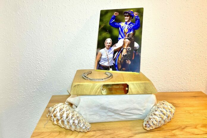 Philipp Graf Stauffenberg, der Züchter von Fantastic Moon, hat dessen Derbysieg-Hufeisen ersteigert.