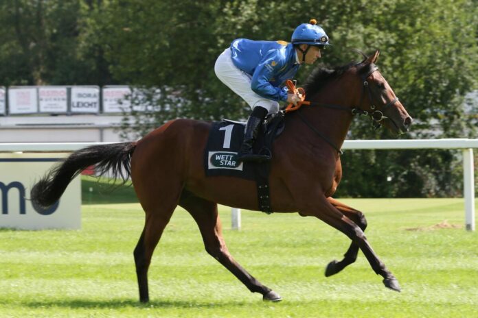 Immer vorne dabei, musste Siegreiter Rene Piechulek seinen vom Gestüt Brümmerhof gezogenen Partner in der Geraden eigentlich nur einmal kurz bemühen, dann war die Frage nach dem Sieger beantwortet. In etwa folgen konnte nur noch der Nedorostek-Schützling Kalimdor, eine Chance auf den Sieg hatte aber auch er nicht.