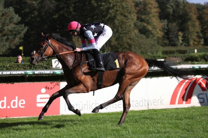 „Wie sie einmal auf freier Bahn war hat sie super angezogen und das gut bewältigt“, so Siegreiter Leon Wolff nach dem Rennen.
