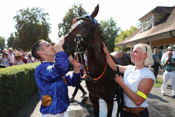„Der Boden war heute Morgen mit 4,0 Tres Souple angegeben, das kommt für Fantastic Moon natürlich nicht in Frage. Wir hoffen jetzt, dass das Wetter hält und wir vielleicht nur noch am Mittwoch einen leichten Schauer kriegen“, sagt Baumgarten weiter.