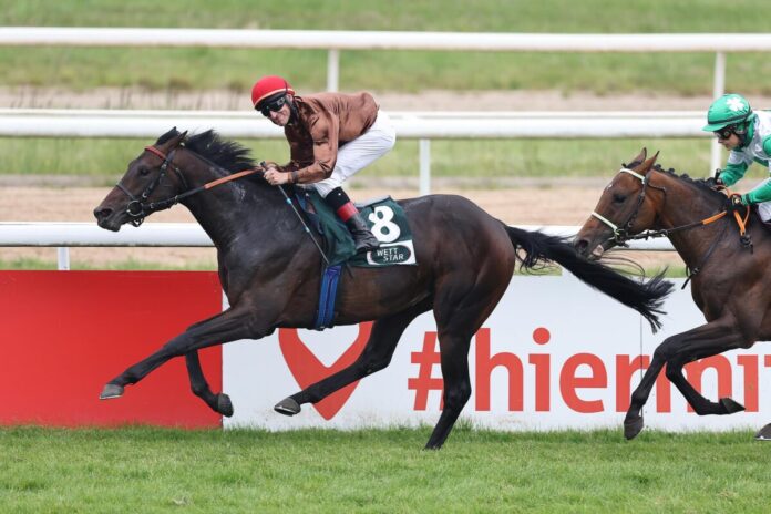Von Siegjockey Andrasch Starke auf Warten geritten, packte der siegreiche Almanzor-Sohn dann aber mit jedem Meter mehr immer besser an und kämpfte sich am Ende gegen den Gast aus Mülheim noch sicher nach Hause. „Er hat mir gleich gut gefallen, als ich ihn gesehen habe. Auch die Arbeit war gut. Ich sollte ihn diesmal ein bisschen auf Warten reiten, das hat prima geklappt. Es war zum Glück ja auch Tempo im Rennen. Hamburg kann kommen“, so Starke mit einem breiten Grinsen im Gesicht nach dem Rennen.