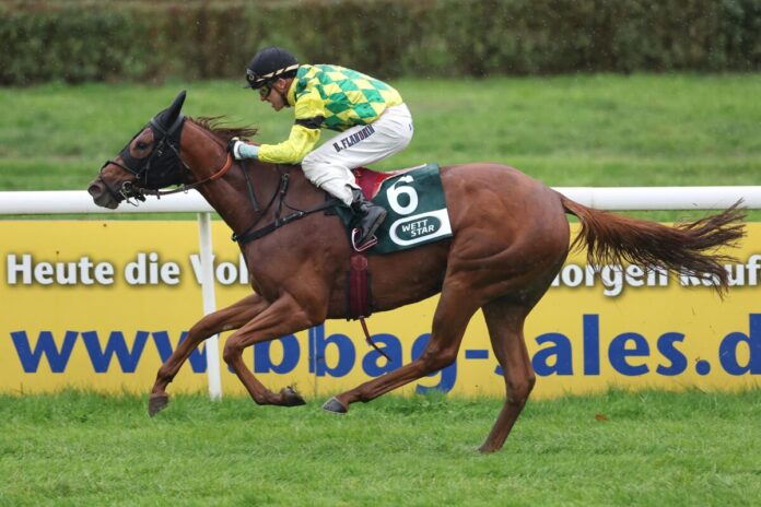 Dieser stellte sie nun erstmals im Spodeck Auftaktrennen erstmals unter seiner Regie vor und dabei gab es direkt einen Volltreffer, denn von der Spitze aus gewann Scaletta ganz klar gegen vier Konkurrenten über 1300 Meter. „Ich denke sie ist eine nette Stute. Bei den letzten Malen ging sie immer von hinten nun haben wir es mit ihr von vorne versucht. So konnte sie am Ende deutlich besser zulegen“, analysierte Siegreiter Bertrand Flandrin.