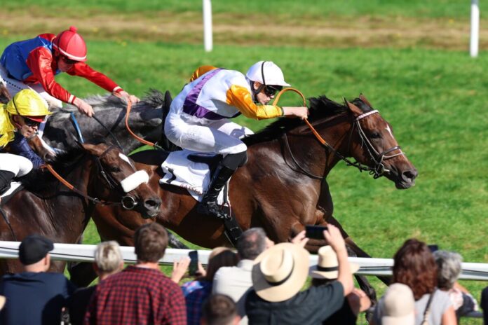 Es war die Rennfarbe mit der weißen Kappe, welche am Zielpfosten als Siegerin auszumachen war. Diese hatte Leon Wolff über seinen Helm gestülpt und nachdem er mit Nicoreni bereits den Preis der Diana für den Asterblüte-Stall von Trainer Peter Schiergen gewinnen konnte, legte er nun im Gruppe II-Rennen in Baden-Baden mit Egina nach. Schon in der Diana kam er als „zweite Farbe“ zum Zuge, weil sich auch da Andrasch Starke für Santagada entschied. Wie in Düsseldorf hatte die favorisierte Santagada wieder nicht den allerbesten Rennverlauf. Nach Platz sechs zuletzt wurde es dieses Mal der vierte Platz.