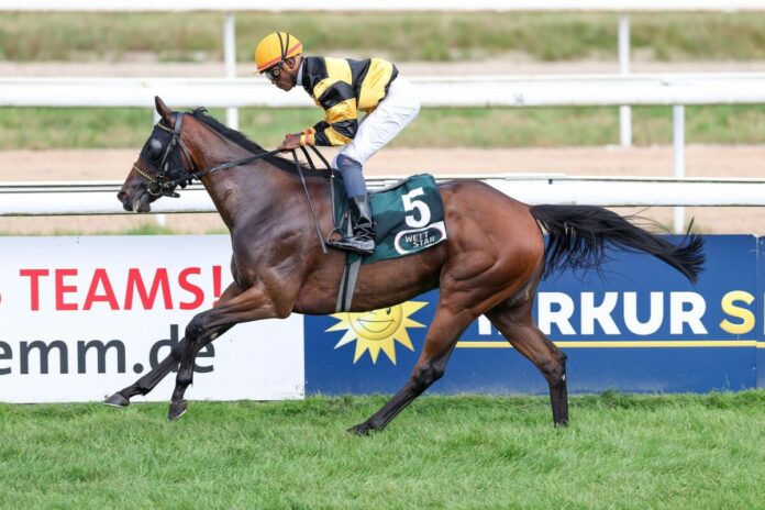 Vollkommen überlegen gewann die von Andreas Wöhler trainierte Stute den MERKUR SPIELBANKEN CUP über 1850 Meter. Siegreiter Eduardo Pedroza trug dabei prominente Farben zum Erfolg, denn Noir et Or Elevage S. A. steht als Deckname im Rennprogramm. Dahinter verbirgt sich die Familie Moussac, die für eine große Rennsportdynastie steht. Anfang 2021 verkaufte die Familie Moussac das eigene Gestüt Mézeray und verkleinerte die Zucht und führte den Namen Noir et Or Elevage S. A. ein. Die Zucht wurde umgestellt und Qualität statt Quantität hieß das neue Motto.