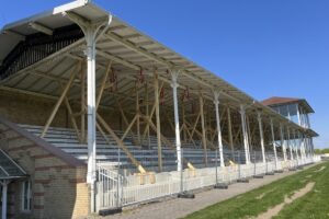 Aktuelles Sorgenkind ist die Iffezheimer Tribüne. Trotz dessen, dass 2017 das Dach saniert wurde, gab es nun akute Bedenken. Zum einen herrschte die Gefahr, dass dieses undicht wird und einzustürzen droht, und zum anderen gab es Bedenken darüber, dass das Dach „abheben“ würde, sollte der Wind dieses von unten angreifen. Nun wurde die Tribüne mit einer Holzkonstruktion provisorisch gesichert. Durch diese Sicherung ist gewährleistet, dass beispielsweise die sich im Inneren der Tribüne befindliche Turf-Schänke wie gewohnt genutzt werden kann. Außerdem können so auch die bis dato aufgestellten Bauzäune entfernt werden und der Bereich rund um die Tribüne bei den Renntagen zugänglich gemacht werden. Möglicherweise kann sogar die Tribüne als Ganzes genutzt werden, das wird sich allerdings erst in den Tagen vor dem Frühjahrs Meeting entscheiden. Momentan wird die Tribüne in regelmäßigen Abständen inspiziert und vielleicht kann dann auch der Zugang an den Renntagen genehmigt werden. Von allem unbetroffen sind auf jeden Fall die beiden dazugehörenden Türme mit den Namen „Kincsem“ und „Oleander.“ Die Kosten für die aktuelle Sicherungsmaßnahme betragen rund 100.000 Euro. Für die Sanierung des Daches der Tribüne, welche unter Denkmalschutz steht, werden derzeit rund 1.000.000 Euro kalkuliert. Diese Sanierung soll nach der aktuellen Saison und zum Frühjahrs-Meeting 2026 abgeschlossen werden.