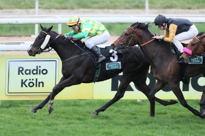Nun folgte also direkt zum Auftakt der klassischen Saison der erste Sieg, welchen Jockey Bayarsaikhan Ganbat unter Dach und Fach brachte. Anfangs war die 7,5:1-Chance noch etwas heftig unterwegs, doch beruhigte sie sich später hinter der Frontrennerin Ayada sehr gut und spurtete dann spät im Rennen noch an Ayada vorbei. Jene von Peter Schiergen vorgestellte Brümmerhoferin konnte in der Geraden immer wieder zulegen und gab unter Sibylle Vogt ein exzellentes Lebensdebüt. Saman, eine Darius Racing-Vertreterin aus dem Stall von Henk Grewe, wurde am Ende Dritte. Ihr Reiter Thore Hammer-Hansen hatte in der Gegenseite aus der äußersten Startbox direkt auch die äußerste Spur gewählt. Beinahe wäre dieser Plan aufgegangen.