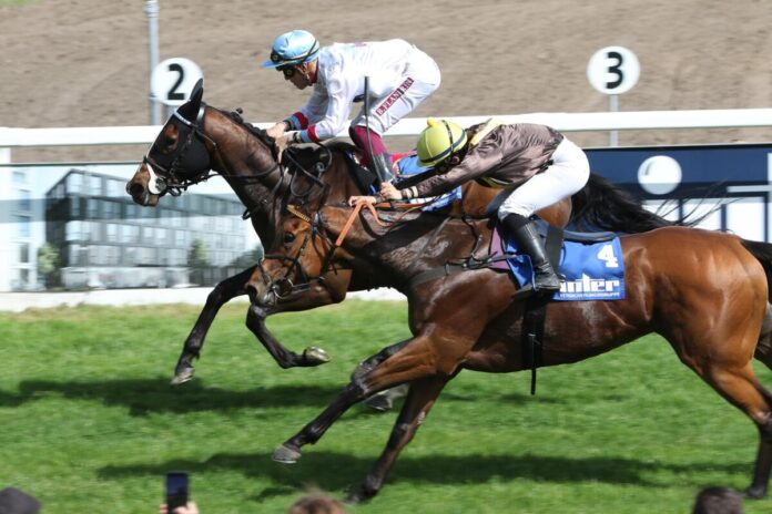 „Wir haben im Moment gute Form. Er kennt die Bahn gut und ich denke er hatte ein perfektes Rennen“, so Siegreiter Bertrand Flandrin nach dem Rennen. Auch in diesem Rennen gab es wieder ein reiterloses Pferd, denn im Zielbogen musste Andrea Ricupa aus dem Sattel von Sacred Moon. Der Azubi-Champion war glücklicherweise schnell wieder auf den Beinen, seinen Ritt auf Bohumil Nedorosteks Zeraphina im fünften Rennen des Tages übernahm allerdings Robin Weber.