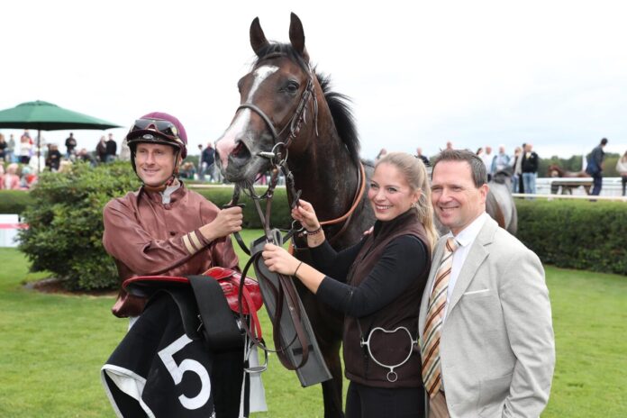 Der Jockey nach dem Rennen: „Dass er gut ist wussten wir schon vorher. Er hat alles was ein Zweijähriger braucht – super Kopf, super Körper.“