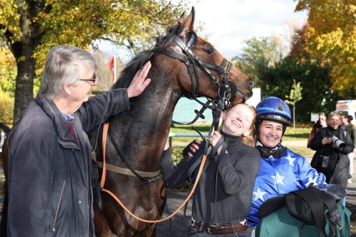 Allerdings störte das Aida überhaupt nicht. Die Alson-Tochter aus der Zucht und dem Besitz des Gestüts Schallern kam dabei überhaupt nicht gut vom Start und folgte zunächst mit einigen Längen hinter den vorderen Pferden. Schon im Schlussbogen rückte sie aber deutlich näher heran und in der Zielgeraden entwickelte sich dann ein packendes Duell zwischen der späteren Siegerin und Plain Vanilla aus dem Stall von Waldemar Hickst.